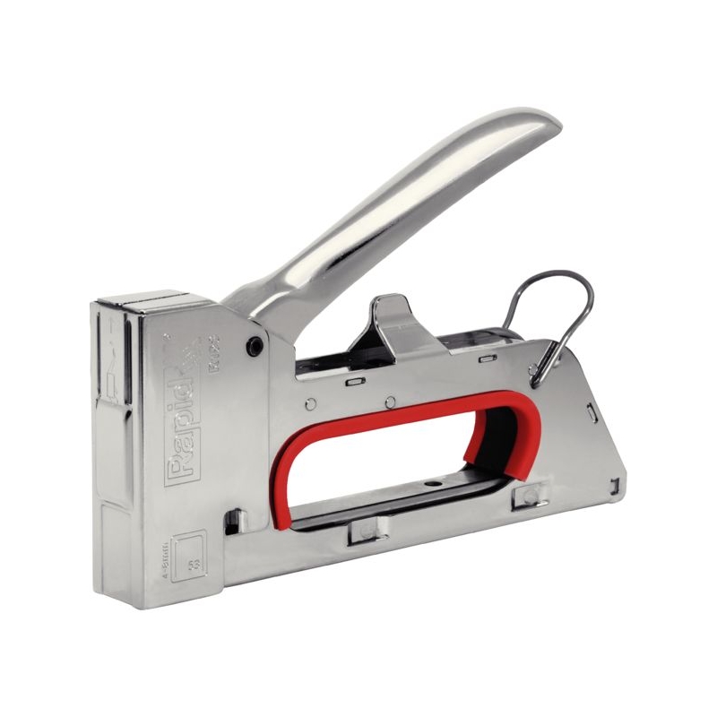 Parfaite pour tous travaux de décoration, tapisserie et panneaux muraux. Corps en acier chromé. Amortisseur de bruit et système antirecul. Poignée ergonomique. Utilise des agrafes n°53 de 6 à 14mm. Chargeur : 156 agrafes Poids : 530 g