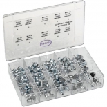 Coffret de 80 graisseurs assortis, droit à 45° et 90° du Ø 6 au 10. Pression de service : 150 bar