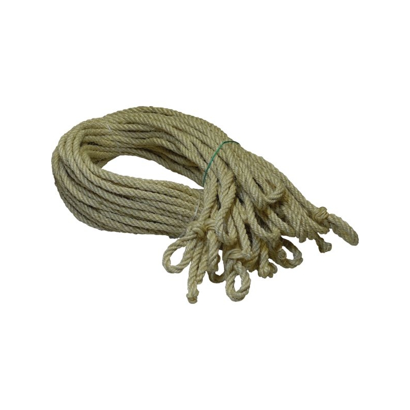 Cordage en fibres naturelles résiste au ciment. Très utilisé sur les chantiers et en agriculture. Peut être sensible aux intempéries. Bonne prise en main, ne brûle pas. Ø : 12 mm Longueur : 4 m Vendu à la pièce
