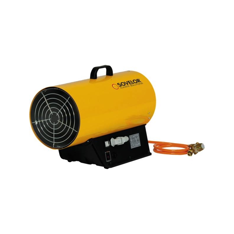 Utilisation intérieure et extérieure dans des locaux bien ventilés. Combustion directe. A commande manuelle. Équipé d'une sécurité de surchauffe, d'une sécurité stop-gaz, de 2 grilles de protection sur l'aspiration et le soufflage et d'un contrôle de flamme par thermocouple. Puissance réglable par vanne. Se fixe directement sur une bouteille de gaz propane. Puissance calorifique : 18 à 33 kW Alimentation : 230 V Débit d'air : 1000 m³/h Poids : 8 kg Tuyau souple, manodétendeur gaz, câble et prise électrique inclus.