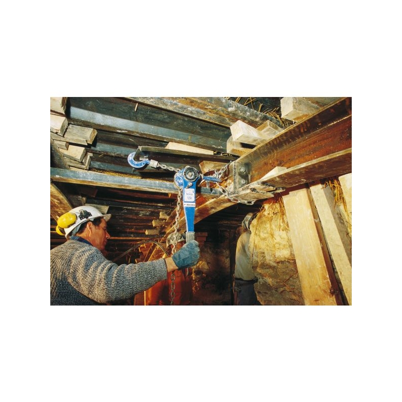 Palan manuel double-clic pour tendre, tirer, lever, positionner. Chaîne de levage traitée anticorrosion. Crochets à rotation libre 360° avec linguet de sécurité. Fermeture automatique du frein en charge. Sécurité de fin de chaîne. Conforme à la directive machine 2006/42/CE. Hauteur de levée : 3 m 90% recyclé, 90% recyclable