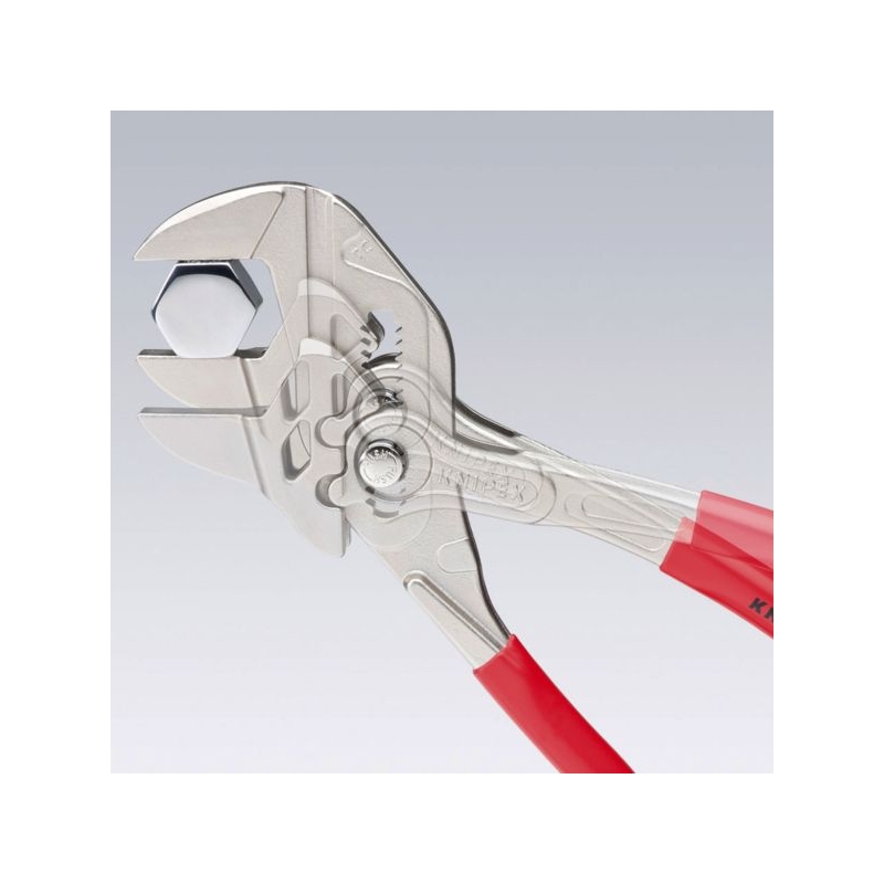 Remplace tout un jeu de clés plates, métriques et en pouce. Mâchoires lisses n’endommageant pas les supports. Réglage par simple pression du bouton. Poignées gainées en PVC.