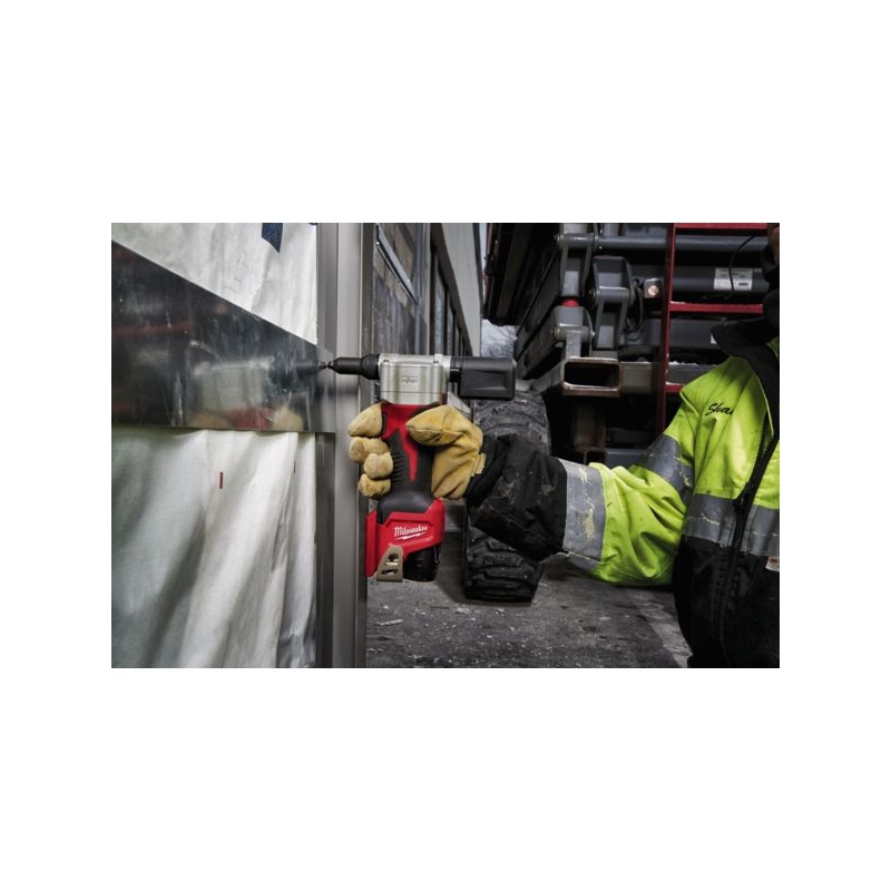 Fonctionne sur batterie 12 V. Convient pour tous les rivets en aluminium, acier, acier inoxydable et cuivre jusqu'à 4,8 mm. Le nez permet de tenir les rivets dans n'importe quelle orientation. Système de rangement intégré des différents nez pour rangement rapide et simple. Éclairage LED intégré. Livrée avec 4 nez de pose, avec 1 chargeur et 1 batterie 12 V - 2,0 Ah Li-ion.