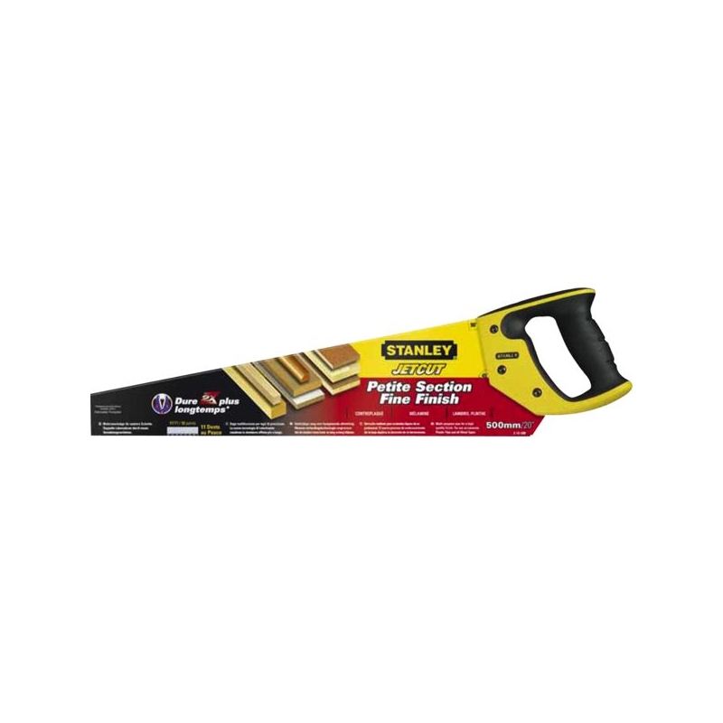 Pour coupe en travers. Lame en acier de 0,85 mm d'épaisseur. Traitement de denture HardPoint accroît la longévité de coupe, favorise une meilleure pénétration et facilite le sciage. Poignée bi-matière soudée sur la lame permettant le traçage à 45° et 90°. Nombre de dents / pouce : 11 Longueur de lame : 500 mm