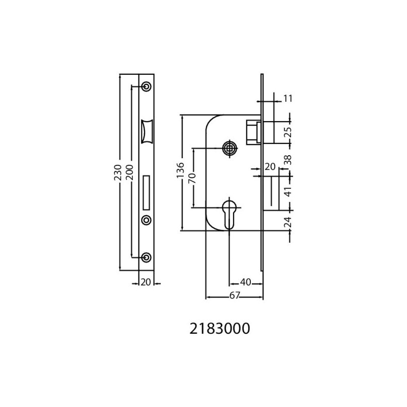 Clé I, profil européen. Réversible sans démontage. Gâche à commander séparément. Conforme à la norme NF EN 12-209. Dimensions du coffre : Axe 40 : 136 x 67 mm Axe 50 : 136 x 77 mm Entraxe : 70 mm Fouillot carré : 7 mm Têtière à bouts ronds : 230 x 20 mm Finition : époxy noir Conditionnement : boite Colisage : 10 pièces