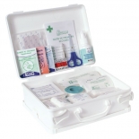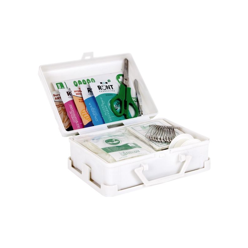 Coffret de secours en polypropylène équipé d’un support mural. Contient les « essentiels » de la trousse de premiers secours pour équiper bureaux, magasins, véhicules, entrepôts ou ateliers.